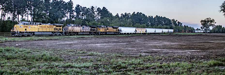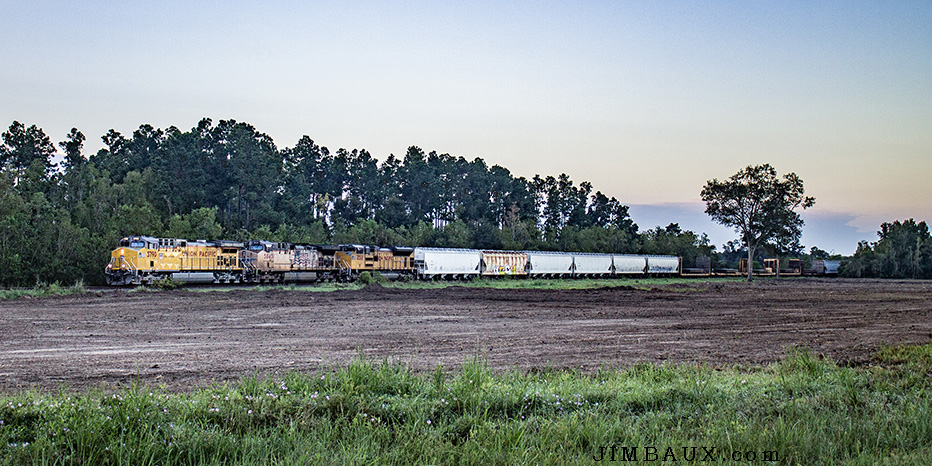 I accidently discovered a cool new shot at the west siding switch at Crowley! Yeah, I think that I will photograph the train here; it’s a good wide-angle shot. It’s a new shot. I already got a new shot on the Lake Charles Subdivision this morning; I can get a new shot on the Lafayette Subdivision today.