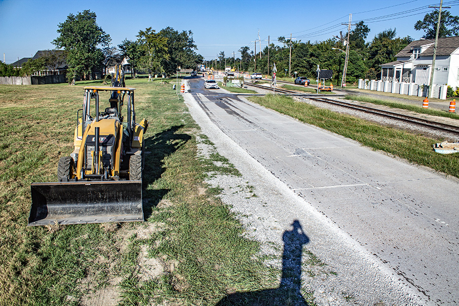 I checked out the shot that I did last August in Rayne, but it was a little bit overgrown with vegetation. So, I decided to go and check out the siding, and, when I did that, there were come Centerpoint Energy people blocking one side of the road east of the siding, and I had to stop for a while; then, they waved me through.
