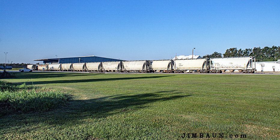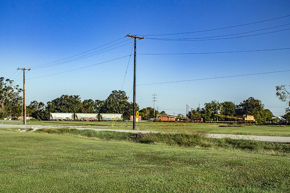 At Baldwin, the eastbound US Highway 90 traffic had to use the westbound lane, because there is a new eastbound lane being built. So, I couldn’t exit at Baldwin, but I could see that there was nothing to see there. There were the two locomotives there as usual, and there was nothing else but carbon black hopper cars. There was nothing in the siding at Bayou Sale, no sign of any railroad activity. Of course, if I had a scanner, which I almost certainly will the next time as I travel this way, I might hear of things happening.