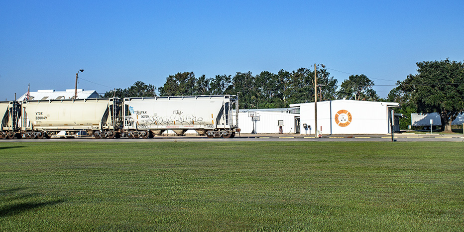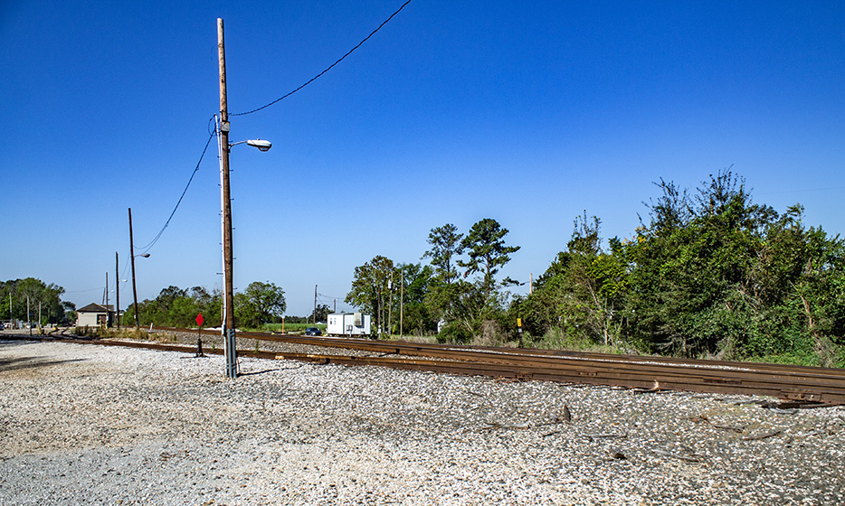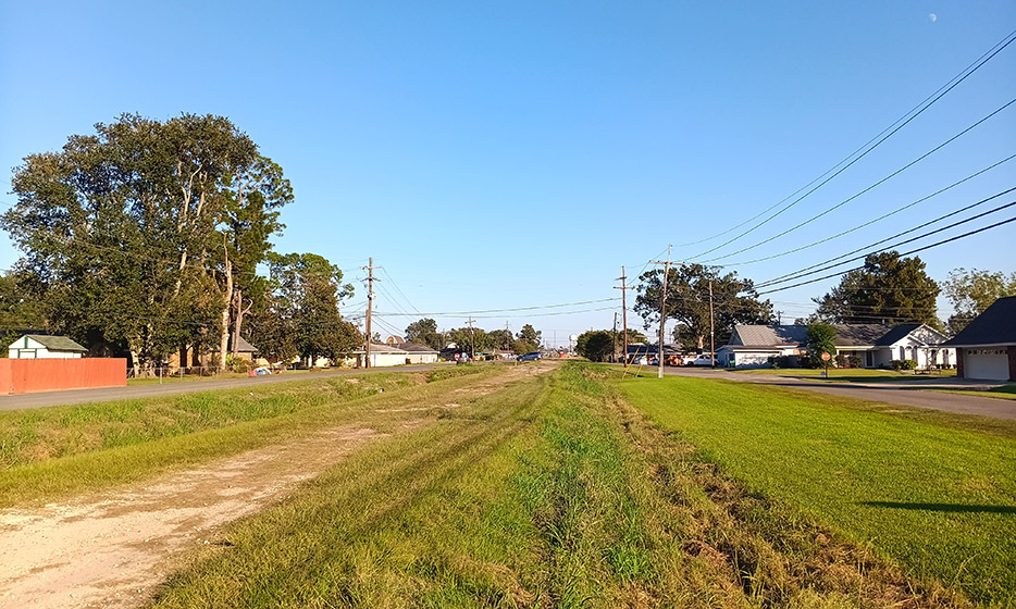 There is a clearing on the northern side of the track on what looks like the eastern end of Siracusaville, what looks like an athletic field, and that looks like a good place for a drone picture. As I crossed Bayou Ramos on US Highway 90, I saw a loaded sugarcane truck crossing Bayou Ramos on Highway 182. That’s interesting.