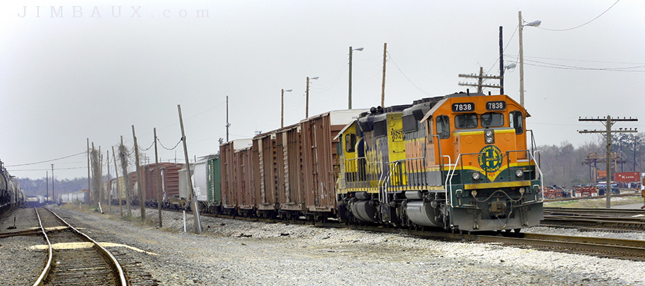 A half hour later, I photographed the G-KCRV, a southbound loaded grain train headed to what is, for me, close to home, at Reserve, Louisiana, as it passed this same location, and I photographed it from the other side of the bridge.